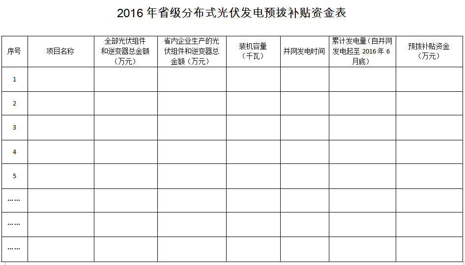 关于上报《2016年分布式光伏发电项目预拨补贴资金》的通知