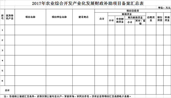 3.2017年农业综合开发产业化发展财政补助项目备案汇总表