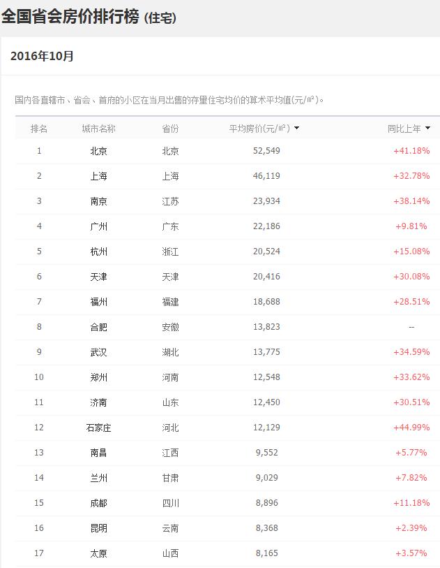 2016年10月份31省会城市最新房价排行榜出炉:http://www.3jise.com/article/64920.html