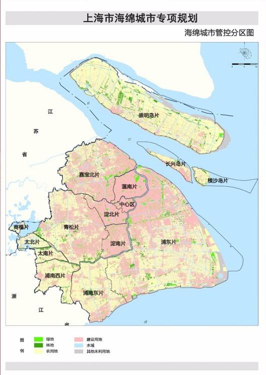 生态修复区:中心城及新城周边地区,外环绿带、黄浦江、苏州河沿岸区域、楔形绿地。