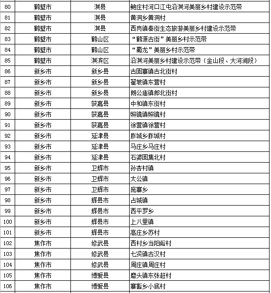河南省美丽乡村建设试点项目公示