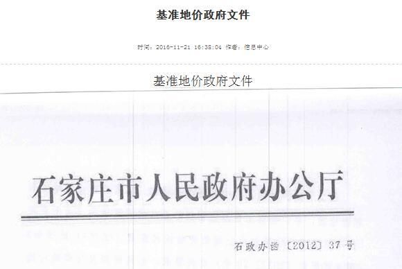 2016年11月21日,石家庄国土资源局在其官网发布了最新的公示公告——《石家庄市政府关于调整市区国有土地级别及基准地价的通知》。