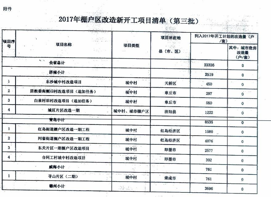 2017年青岛棚户区改造新开工项目清单(第三批)