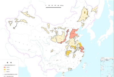 陷重点防治区、长江三角洲及江浙沿海地面沉降重点防治区、华北平原及黄淮地区地面沉降重点防治区、汾渭盆地地面沉降地裂缝重点防治区等地区