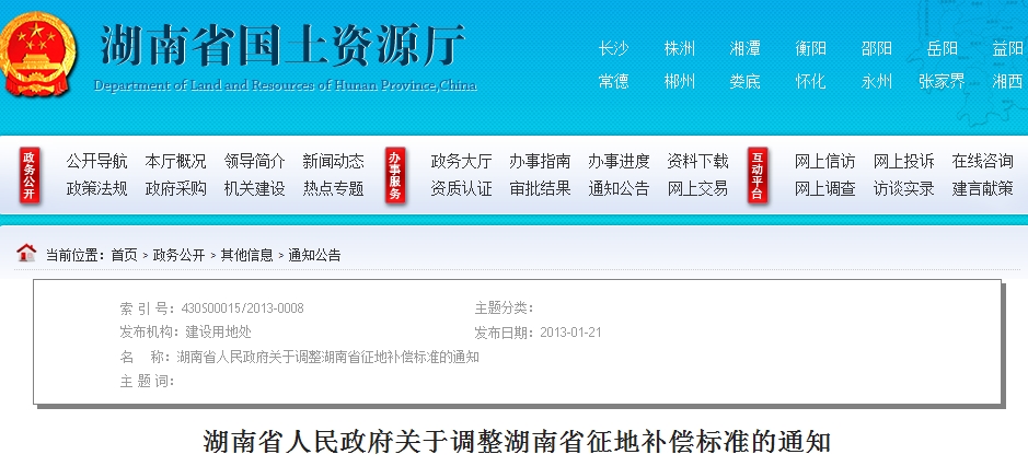 二、湖南省人民政府关于调整湖南省征地补偿标准的通知