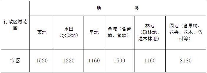 根据宜政秘[2015]163号规定,初步按下表确定补偿标准上报审批。单位:元/亩