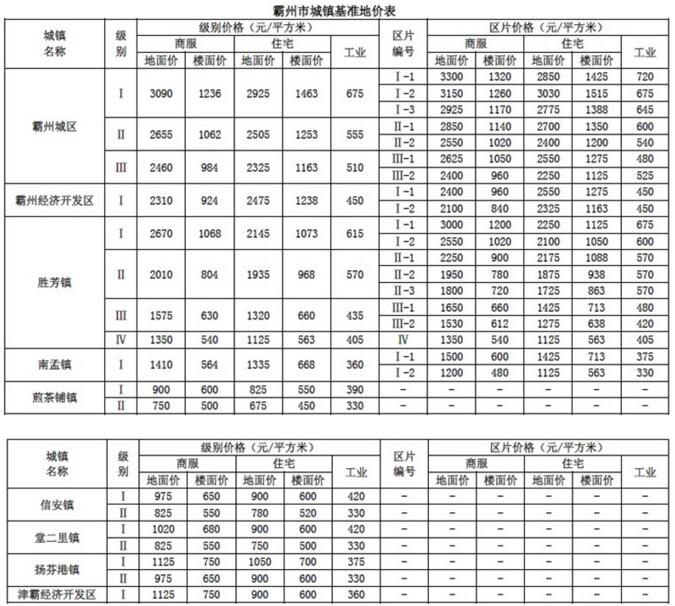 各城镇基准地价是指估价日期为2016年1月1日,各类用途土地法定最高使用年期(商服40年,住宅70年,办公50年,工业50年)土地权利的区域平均价格。