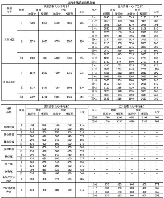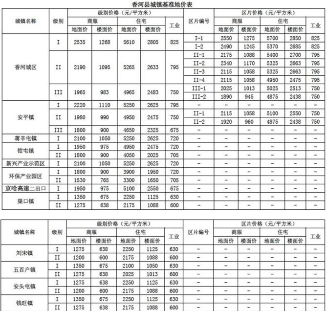 5、香河、大厂6个镇紧随其后(廊坊市二等土地)