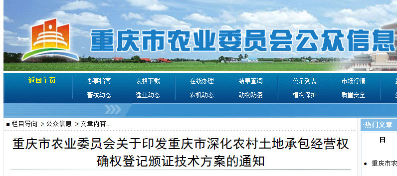 为统一技术标准,规范工作程序,确保重庆市深化农村土地承包经营权确权登记颁证工作顺利进行,依据国家法律、法规有关规定和农业部《农村土地承包经营权调查规程》、《农村土地承包经营权要素编码规则》、《农村土地承包经营权确权登记数据库规范》等有关技术标准规范,结合我市实际,我们组织编写了《重庆市深化农村土地承包经营权确权登记颁证技术方案》,并组织市内相关领域专家进行了评审。现印发给你们,请各地遵照执行。