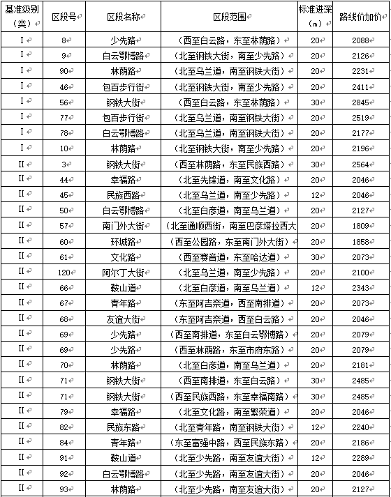 包头市区商业用地区段路线价加价表