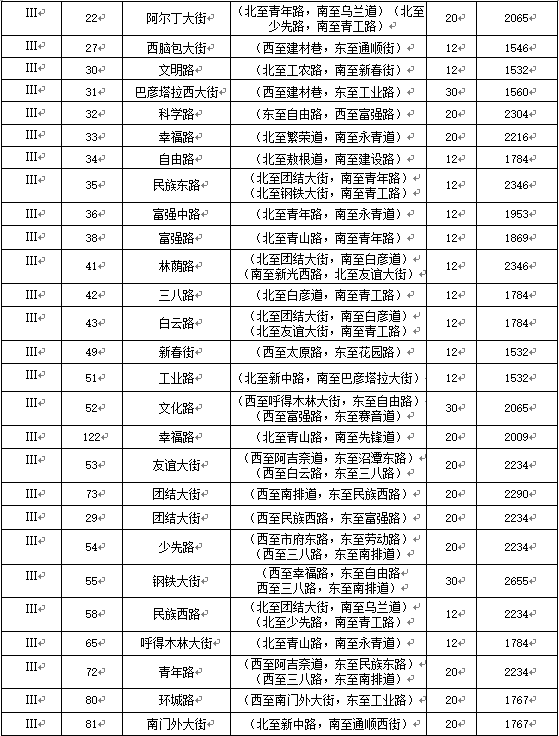 一级地:东至市府东路、南至友谊大街、西至白云鄂博路、北至团结大街。
