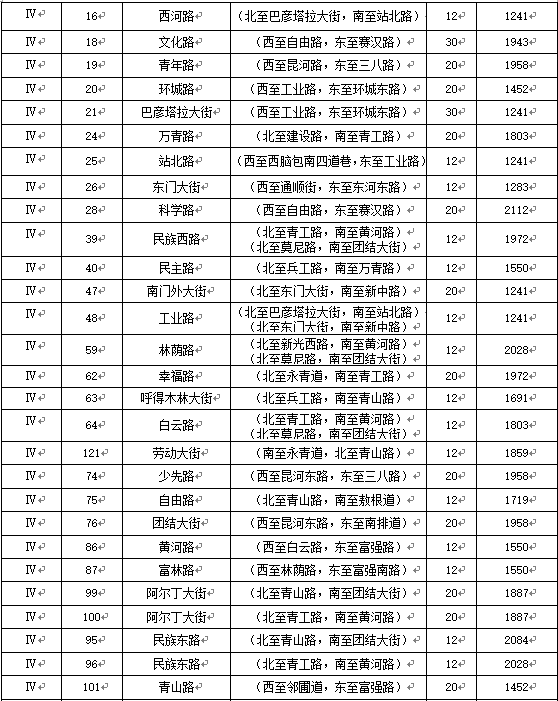 四级地:在三级商业用地区域外向四周延伸,昆区,东至民族东路、南至黄河路、西至昆都仑河、北至莫尼路;青山区,东至建华路、南至黄河路、西至民族东路、北至兵工路;东河区,东至环城东路、南至站北路、西至九原区与东河区交界处、北至东门大街;九原区,东至九原区与东河区交界处、南至哈屯高勒路、西至建华南路、北至江海路。稀土高新区,东至万青路、南至黄河路、西至阿尔丁大街、北到友谊大街。