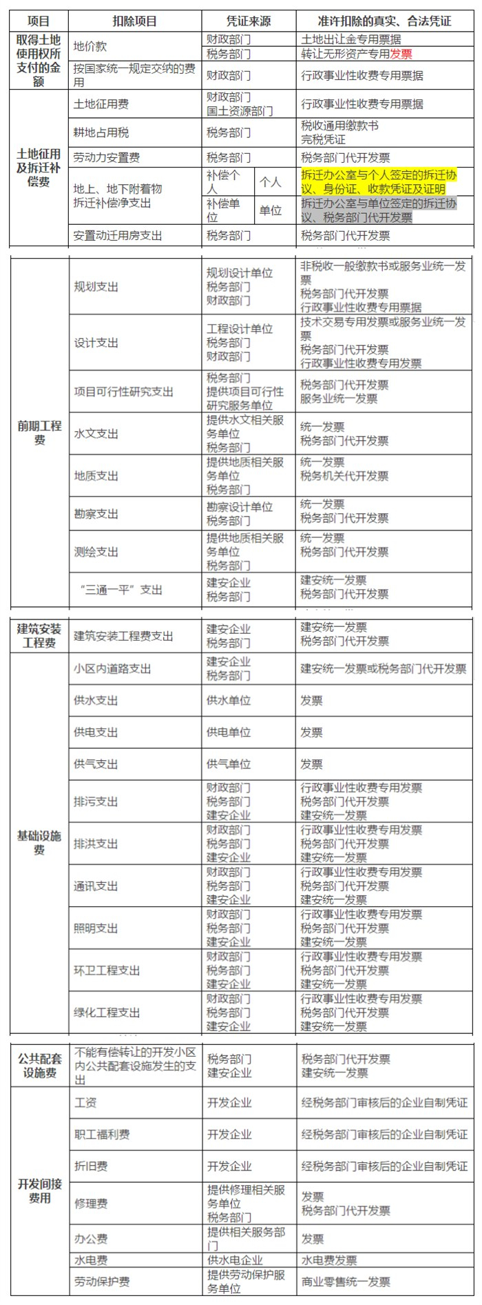 03附件:土地增值税扣除项目有关合法凭证参考表