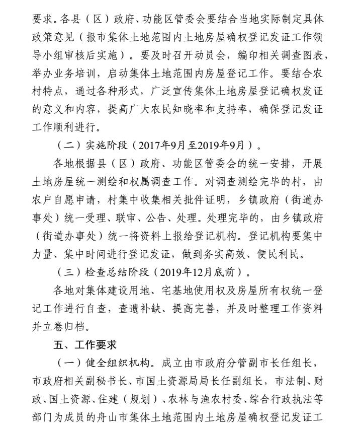 舟山市集体土地范围内土地房屋确权登记发证工作实施方案舟政办发〔2017〕93号:http://www.3jise.com/article/91465.html