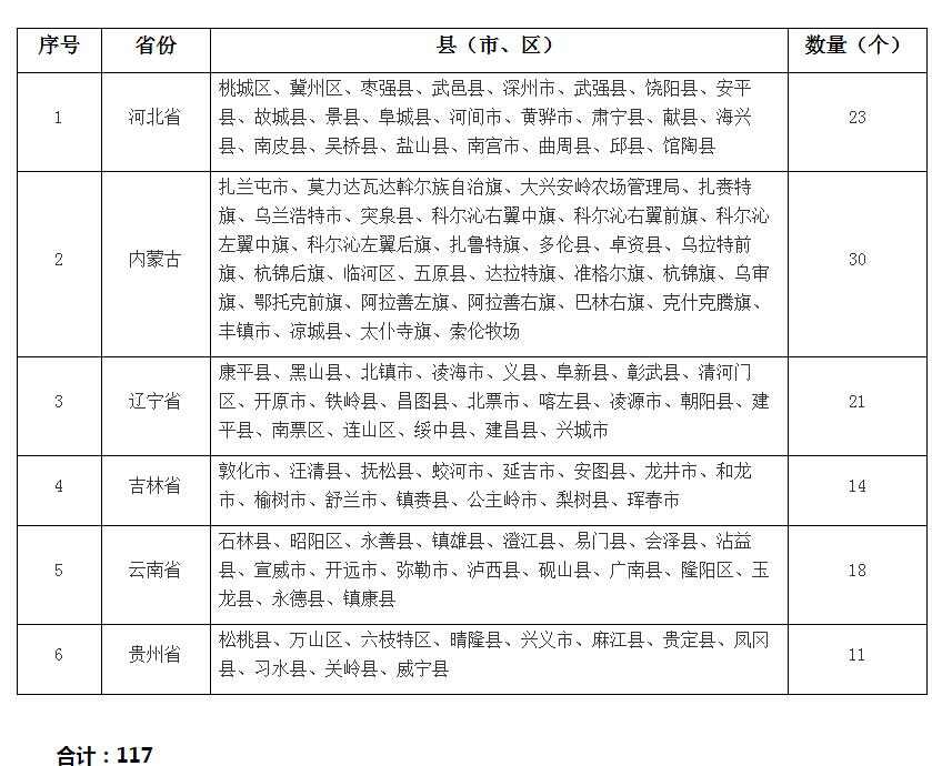 (二)经管系统负责收集附件中117个县(市、区)耕地轮作休耕制度试点地区的农村承包地确权登记数据。