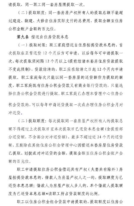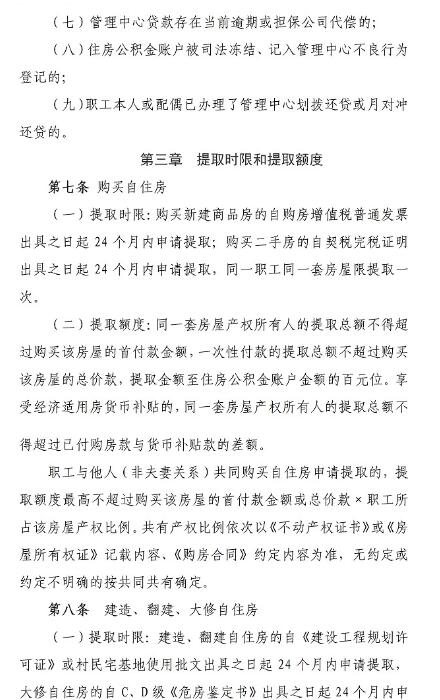 取消了购买、建造、翻建、大修提取额度“不得超过签订购房合同或建设工程竣工之日或危房鉴定书出具之日1年内账户余额”的规定,职工申请购买、建造、翻建、大修提取在相应情形可提取的额度范围内以提取当日的账户余额为限。