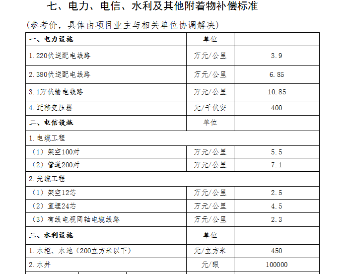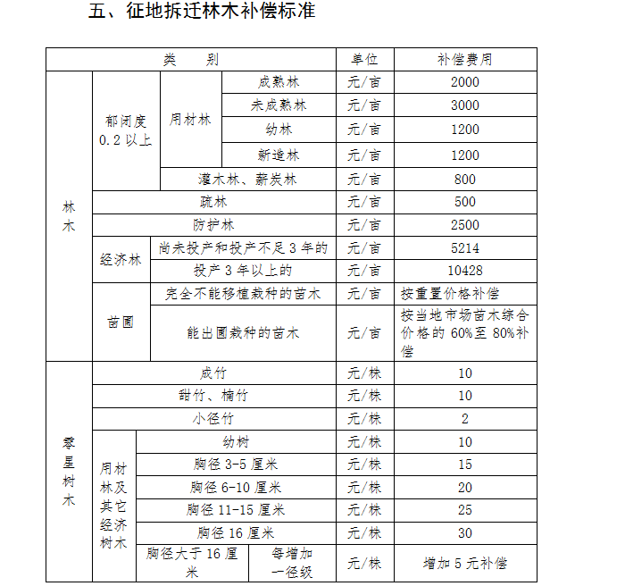 (一)征收农用地补偿标准(水田、旱地、退耕地、园地、林地、农村道路、沟渠、其它农业用地)