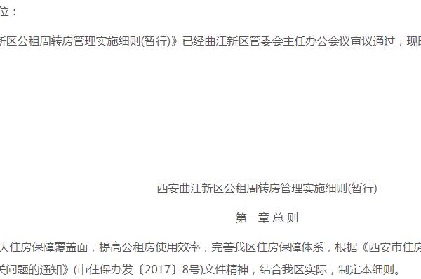 西安曲江新区管理委员会关于印发《西安曲江新区公租周转房管理实施细则(暂行)》的通知