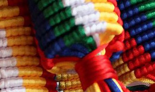 1、选取中国结绳的中间,随意打一个结,使得一根绳的两边可用来打结。取任意一根绳为a,绕食指。2、用食